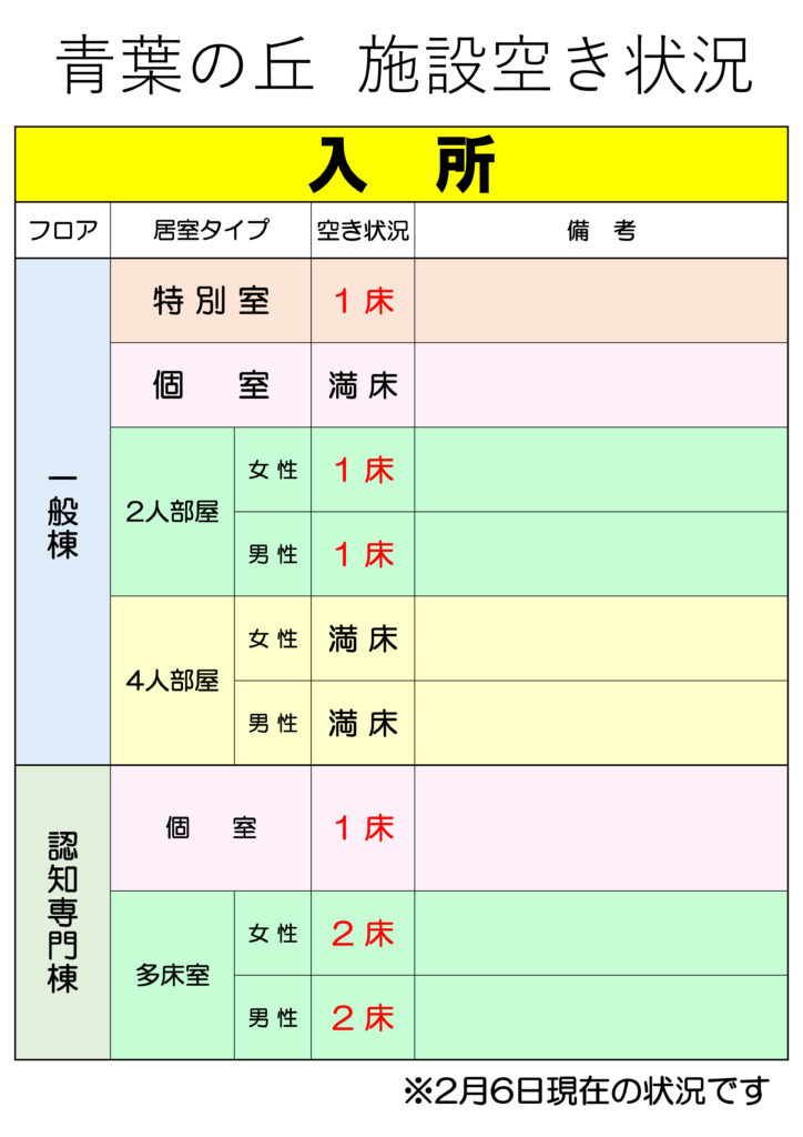 • 施設空き状況