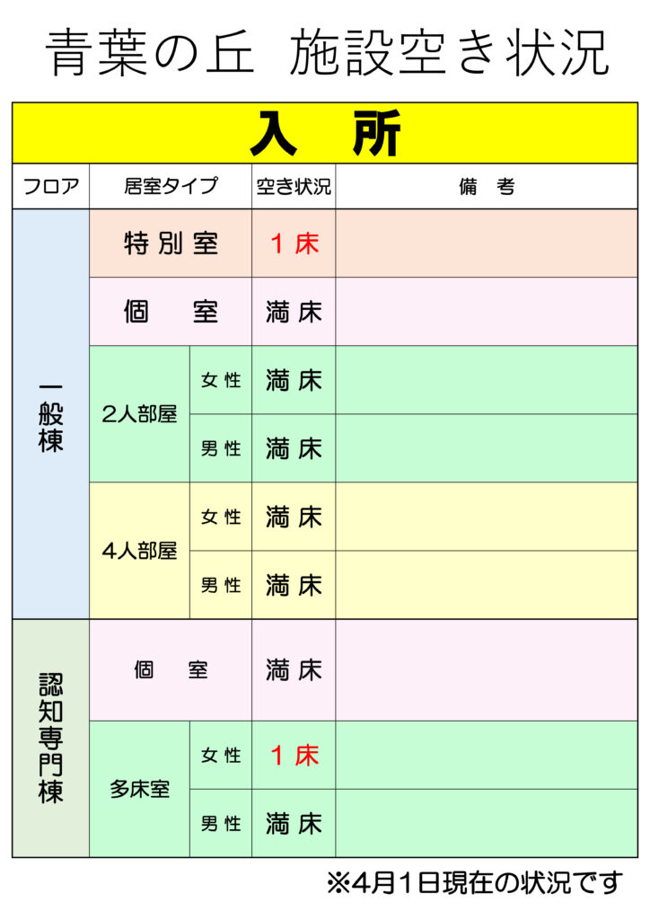 • 施設空き状況